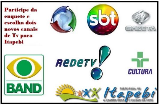 Segundo informações de Antînio Ricardo Alves"Toninho" Secretário de Cultura de Itapebi, a enquete que começa hoje ficar no ar até o dia 10 de Fevereiro quando será divulgada quais os dois canais que serão instalados.